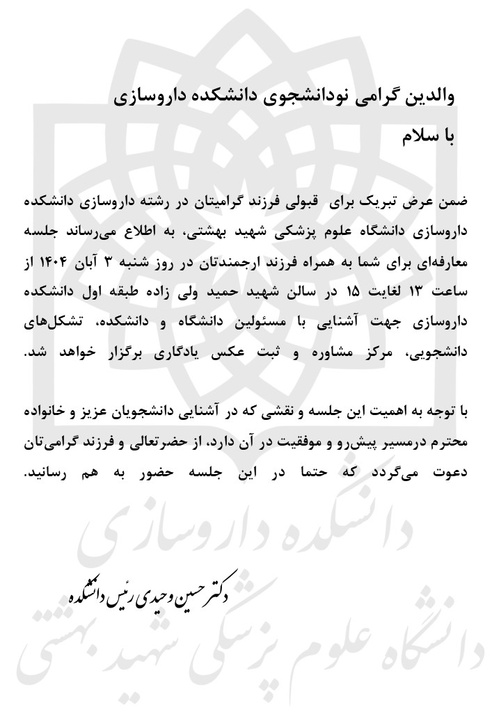 جلسه معارفه دانشجویان ورودی جدید با مسئولان دانشگاه و دانشکده