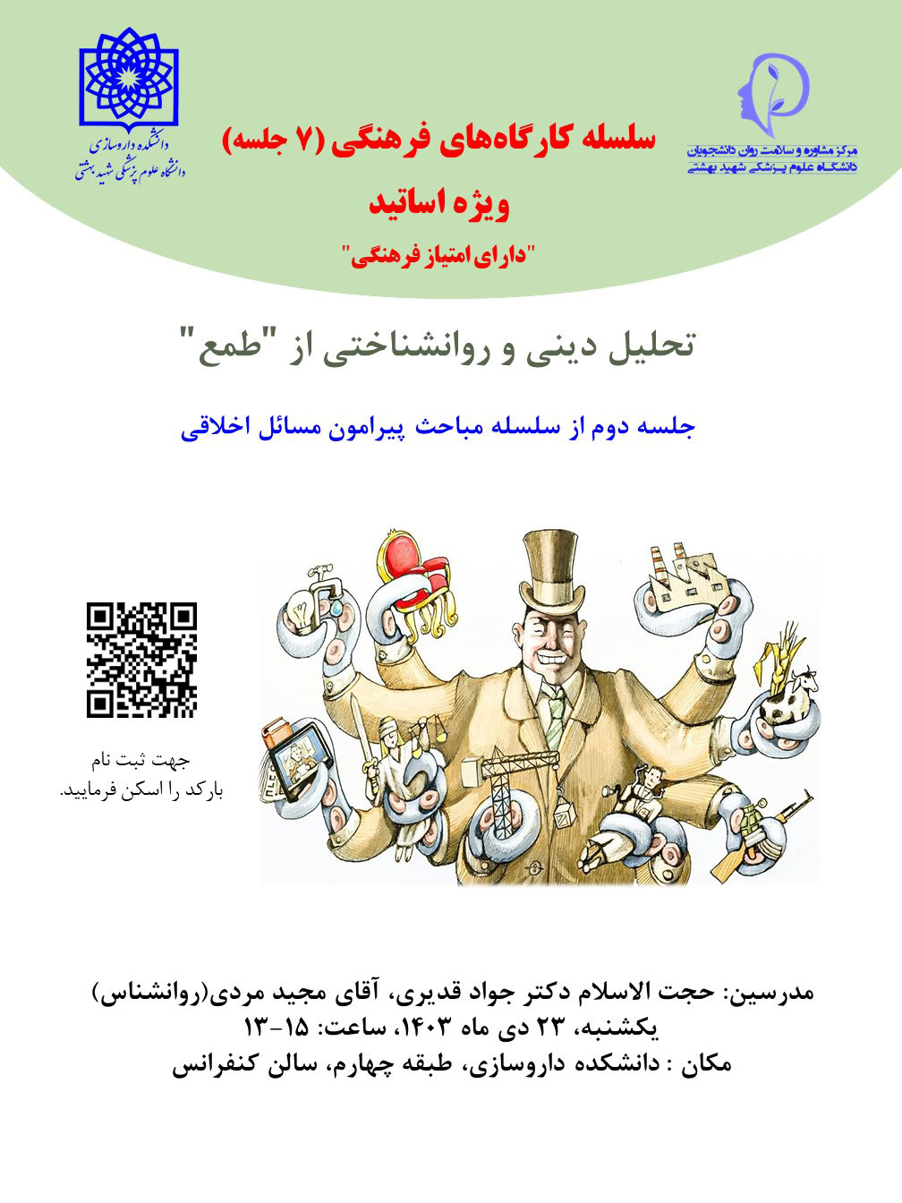 کارگاه ویژه اساتید(تحلیل و روانشناختی طمع) گروه خبری : آرشیو اخبار معاونت دانشجویی و فرهنگی کد خبر : 151334 لینک کوتاه کلید واژه