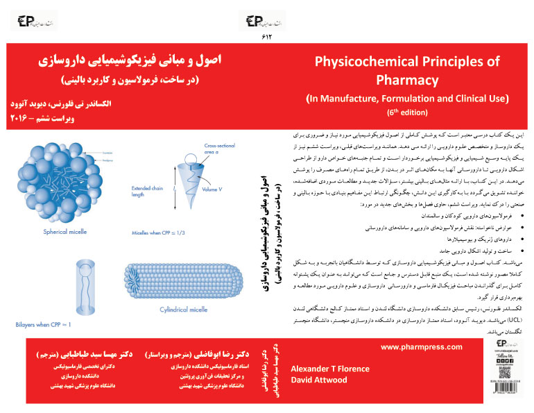 کتاب حاضر، ترجمه ویراست ششم (2017) کتاب Physicochemical Principles of Pharmacy نوشته پروفسور فلورانس و پروفسور آتوود است که بیشک یکی از منابع مهم و پرمراجعه و قابل استفاده برای دانشجویان داروسازی در زمینه فیزیکال فارماسی است.